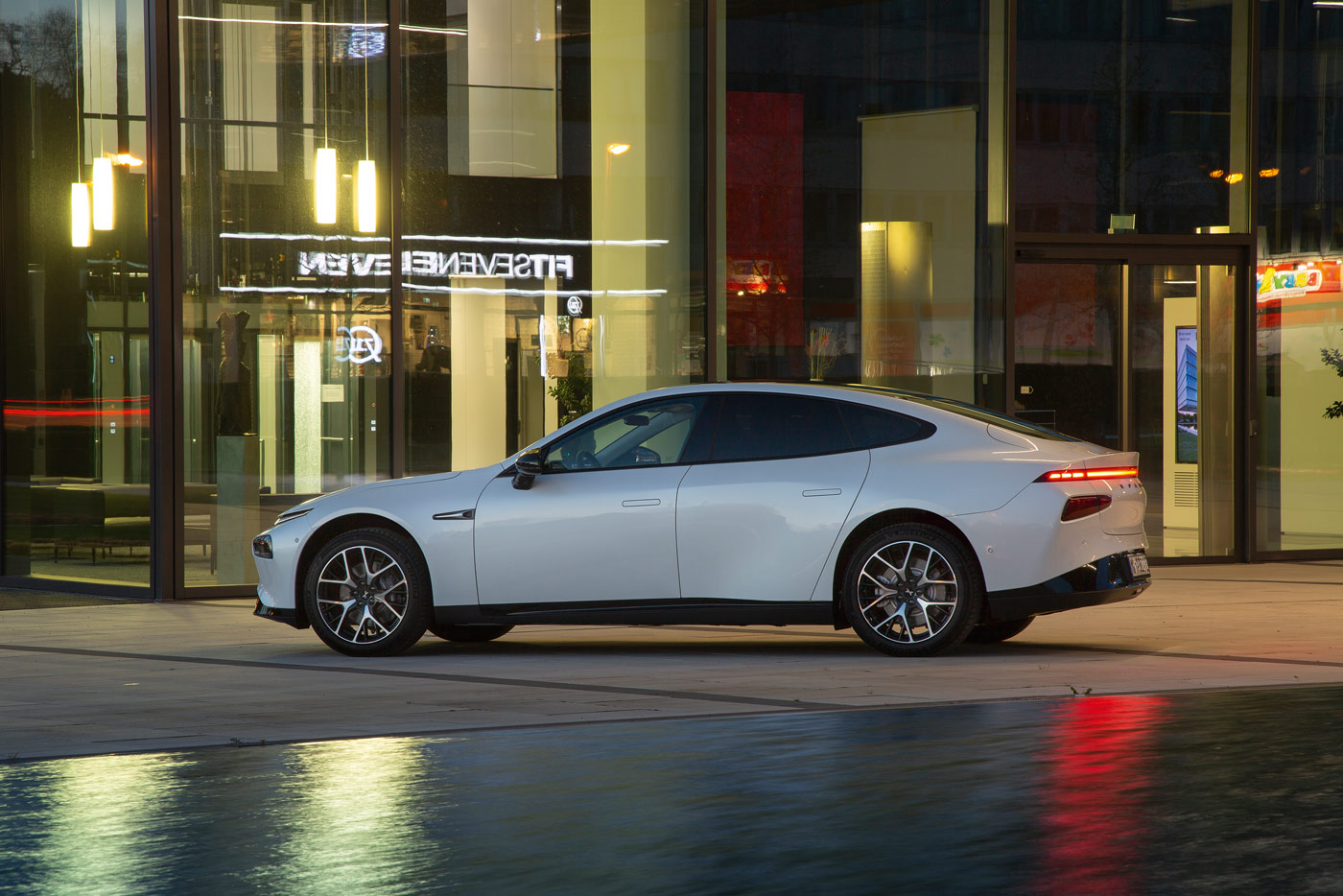 Während die Neuerungen bei G6 und G9 unter der Außenhaut stecken, profiliert sich die Sportlimousine P7 mit einem vollständig neuen Auftritt. Der Elektro-Vier-türer wird zum ersten Mal in Europa gezeigt, seine flache, muskulöse Form wird von futuristischen Licht-Elementen akzentuiert. Trotz seiner extrem sportlichen Form gewinnt der P7 auch an Alltagstauglichkeit: Er verfügt jetzt über eine große Heckklappe. Bei ihm kommt ebenfalls eine 800-Volt-Architektur zum Einsatz.